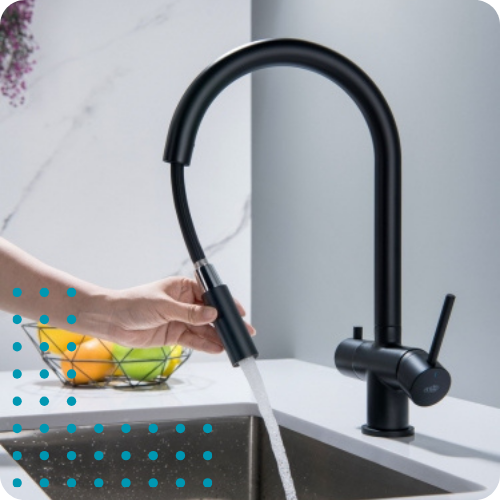 • Zachowuje pełną funkcjonalność: wyciągana wylewka, dwa obwody, perlator, podłączenie filtra itd.