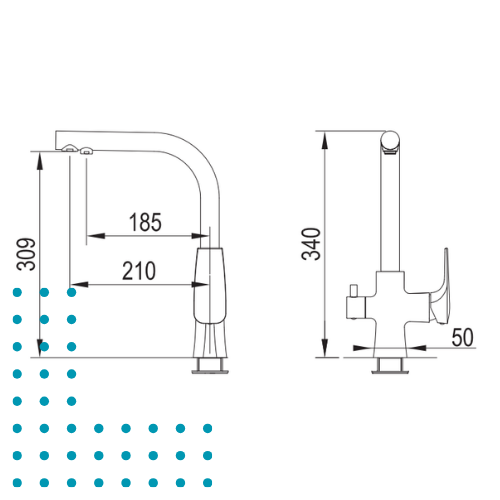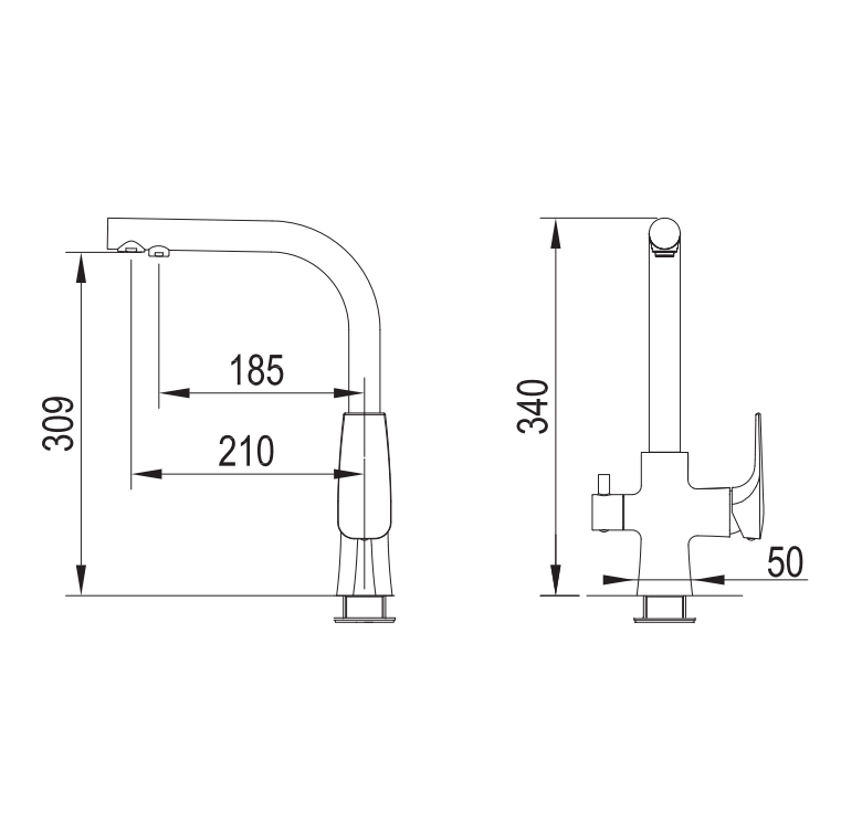 Ergonomiczne sterowanie – osobne uchwyty dla wody filtrowanej i mieszanej