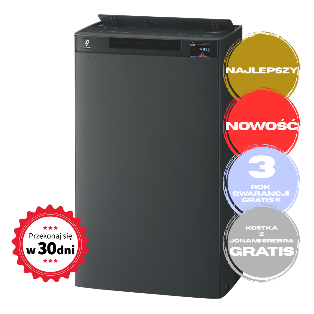 Model Sharp KI-TX100EU-H to nowoczesny oczyszczacz i nawilżacz powietrza klasy premium, zaprojektowany z myślą o użytkownikach, którzy cenią technologiczną perfekcję, komfort oraz wysmakowany design. To flagowa propozycja marki Sharp na sezon 2025/2026, stworzona do pracy w dużych domowych przestrzeniach, biurach typu open space oraz salonach z aneksem. Urządzenie wyróżnia się imponującą wydajnością oczyszczania – 600 m³/h (CADR), co umożliwia efektywną filtrację w pomieszczeniach o powierzchni do 76 m². Dzięki temu KI-TX100EU-H skutecznie eliminuje kurz, pyłki, smog, alergeny oraz nieprzyjemne zapachy. Dodatkowo oferuje rekordową wydajność nawilżania – 1 100 ml/h, zapewniając optymalny mikroklimat nawet w sezonie grzewczym, gdy powietrze staje się zbyt suche. Sercem urządzenia jest technologia jonizacji Plasmacluster® NEXT – najbardziej zaawansowany system w historii marki Sharp. Generując aż 50 000 jonów na cm³, neutralizuje wirusy, bakterie, zarodniki pleśni i alergeny unoszące się w powietrzu, pozostawiając atmosferę świeżą, lekką i naturalną. Oczyszczacz wyposażono w trójstopniowy układ filtracyjny, obejmujący filtr wstępny, HEPA H13 oraz filtr węglowo-krzemionkowy, które wspólnie zapewniają niemal całkowite usunięcie zanieczyszczeń. Każdy element został zaprojektowany z myślą o długiej żywotności i niskich kosztach eksploatacji, co czyni ten model wyjątkowo praktycznym rozwiązaniem na lata. KI-TX100EU-H wykorzystuje pięć precyzyjnych czujników do monitorowania jakości powietrza – mierzących poziom kurzu, zapachów, wilgotności, temperatury oraz natężenia światła. Zebrane dane analizuje inteligentny system sterowania, który automatycznie dobiera parametry pracy w zależności od warunków otoczenia. Efekty można śledzić na intuicyjnym wyświetlaczu LCD, prezentującym w czasie rzeczywistym informacje o stanie powietrza i wilgotności. Pod względem estetyki wersja KI-TX100EU-H zachwyca stonowaną, szarą kolorystyką i minimalistycznym wzornictwem, dzięki czemu doskonale komponuje się z nowoczesnymi aranżacjami wnętrz. Matowe wykończenie oraz subtelne linie konstrukcji nadają mu ponadczasowy charakter, a przy tym podkreślają jego zaawansowany technologicznie wizerunek. Sharp KI-TX100EU-H to nie tylko urządzenie do oczyszczania powietrza – to kompletny system zarządzania mikroklimatem, łączący moc, inteligencję i elegancję w jednej formie. Idealny wybór dla tych, którzy oczekują najwyższej jakości, pełnej automatyzacji i designu dopasowanego do nowoczesnych przestrzeni.