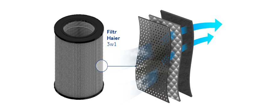 Oczyszczacz powietrza HAIER PURE Comfort to inteligentne rozwiązanie dla zdrowego i czystego powietrza w Twoim domu lub biurze. Wyróżnia się bardzo wysoką skutecznością oczyszczania ze wskaźnikiem CADR 500m³/h., dokładnym monitorowaniem jakości powietrza i przyjaznym sterowaniem. Zastosowanie filtra 3w1 pozwala na efektywne usuwanie włosów, sierści, kurzu, pyłu i dymu a także na pozbycie się trujących substancji znajdujących się w powietrzu, tj. formaldehydu, benzenu, amoniaku czy nikotyny. Oczyszczacz powietrza HAIER PURE Comfort posiada zwartą i kompaktową konstrukcję, która pozwoli umiejscowić go w dogodnej dla użytkownika przestrzeni. W zestawie z urządzeniem znajduje się bezprzewodowy pilot.